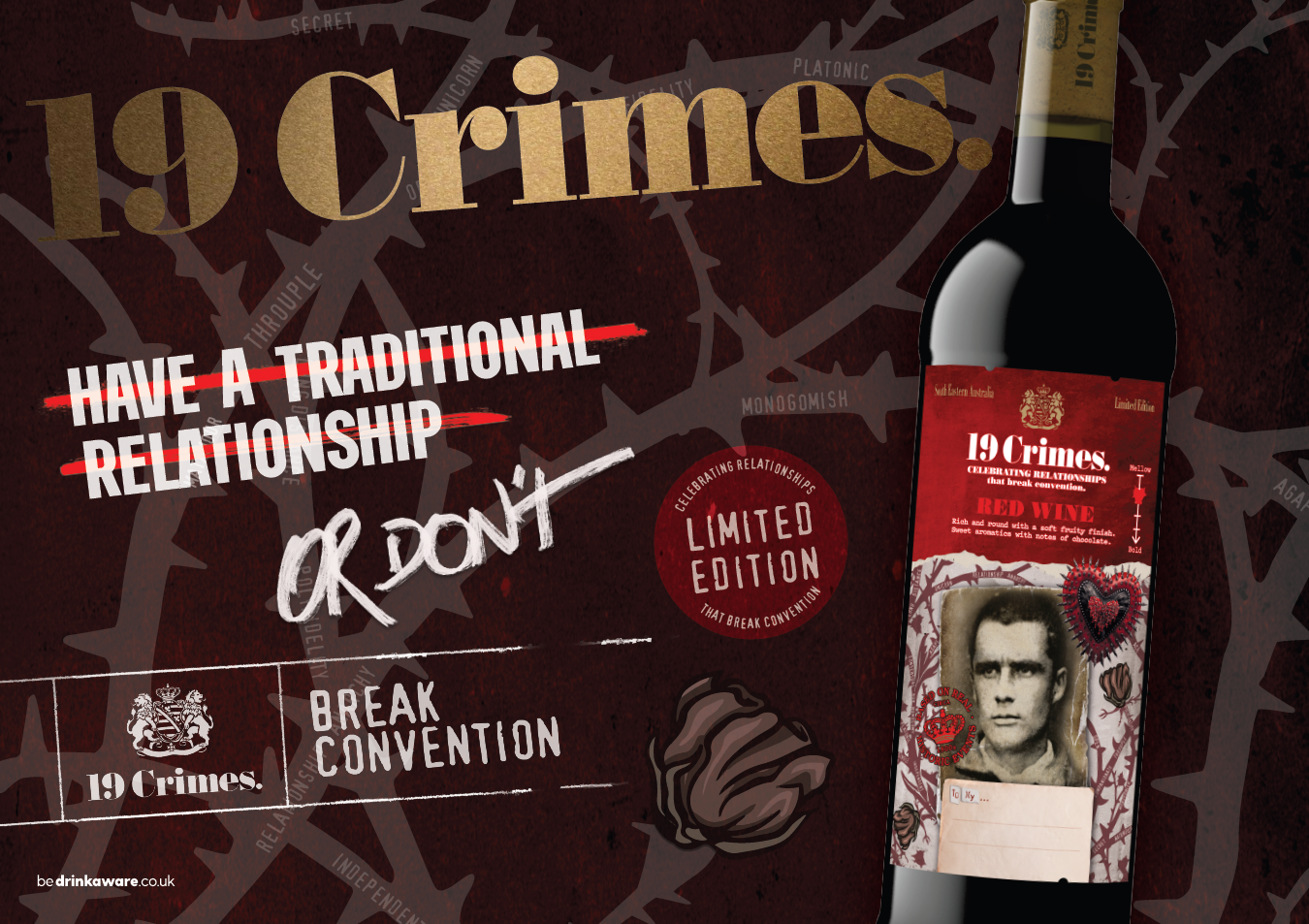 The 19 Crimes limited-edition Valentine's bottles are available at a store near you NOW and only on shelves until February 14th. Miss it, miss out.